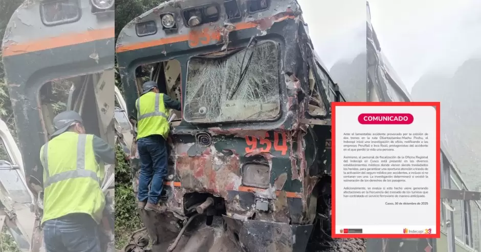 A través de un comunicado, Indecopi dio a conocer que verificaron la atención médica a las víctimas de la colisión y supervisan que las empresas ferroviarias cumplan con "informar a los pasajeros de manera eficiente sobre sus derechos", así como la prórroga de sus viajes, nuevos horarios e itinerarios tras la habilitación de la vía férrea.