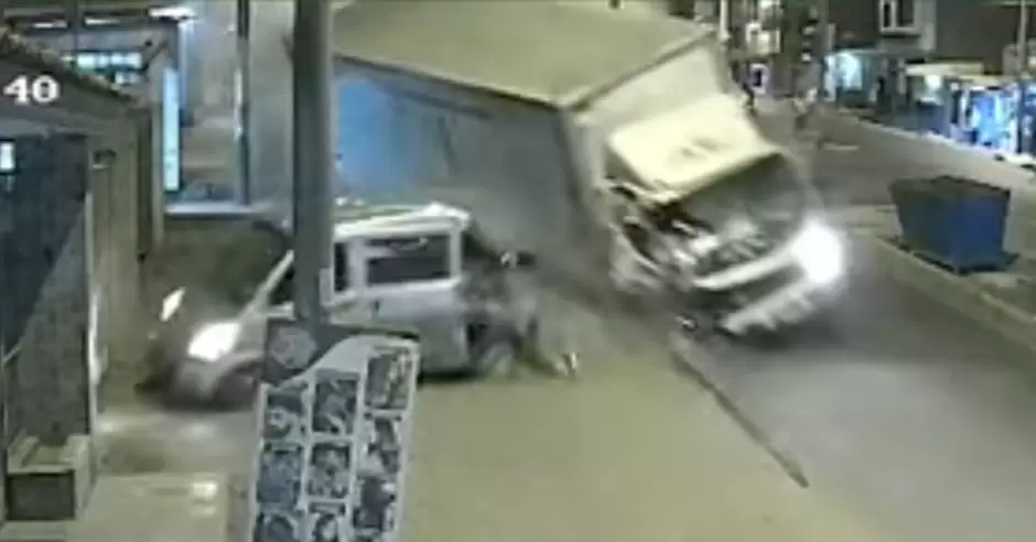 Lamentablemente, el camión furgón perdió el control por lo que impactó primero con una combi y luego contra la unidad que se encontraba cuadrada. Producto del choque, esta se fue de lleno contra un poste de alumbrado público.