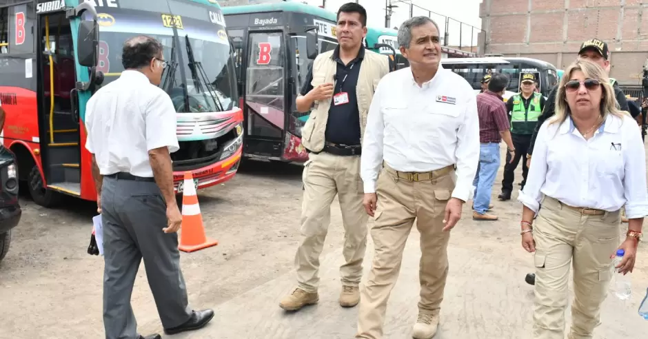 El Ministro del Interior junto con el comandante general de la PNP, el general de policía Óscar Arriola, asistió esta mañana al patio de maniobras de la empresa de transporte Nueva América, en el distrito de Carabayllo para verificar el óptimo funcionamiento del centro de monitoreo.