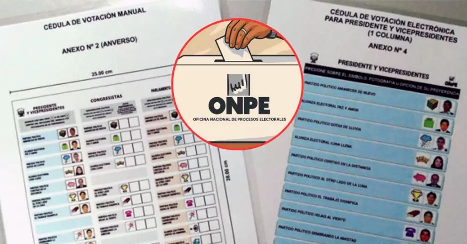 Debido a la transición hacia la bicameralidad, que reemplaza al actual Congreso por una Cámara de Senado y una Cámara de Diputados, la papeleta electoral de la ONPE estará conformada por cinco columnas, donde cada una representa una elección distinta.