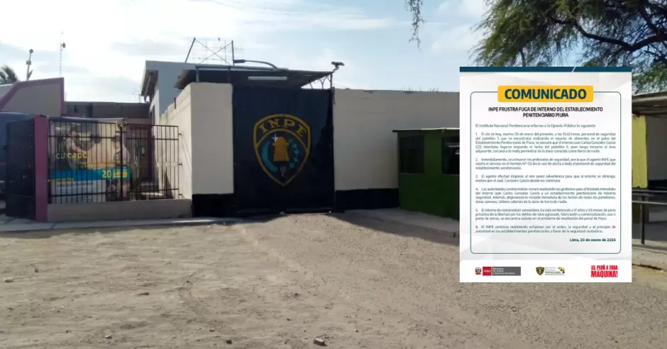 El Instituto Nacional Penitenciario (INPE) informó sobre el intento de fuga de un interno del Establecimiento Penitenciario de Piura quien aprovechó el reparto de alimentos para iniciar su plan de escape. La institución informó que fue capturado y será trasladado hacia un penal de máxima seguridad.