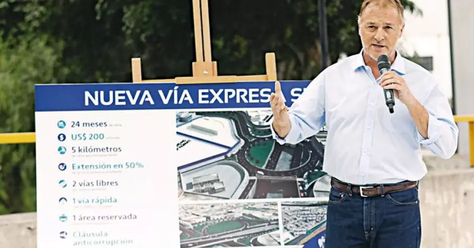“Jorge Muñoz propone una vía de ida y vuelta de 5 kilómetros, con peaje. Esta vía se va a recorrer en ocho minutos y por cada ocho minutos usted va a pagar peaje, que no sabemos cuánto será, con un costo aproximadamente de 114 millones de soles el metro cuadrado”, reveló tras cuestionar que Graña y Montero esté a cargo del proyecto por 40 años.