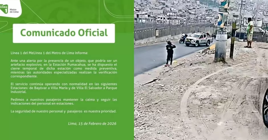 Según un comunicado publicado por la Línea 1 del Metro de Lima la medida se adoptó por la presencia de un objeto extraño, del que se presumía que podría ser un artefacto explosivo.