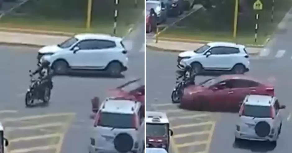 Exitosa accedió a las cámaras de seguridad en donde se registraron el impacto entre los dos vehículos. En primer lugar, se observa que el motociclista intenta ingresar al cruce entre las dos avenidas por la vía auxiliar.