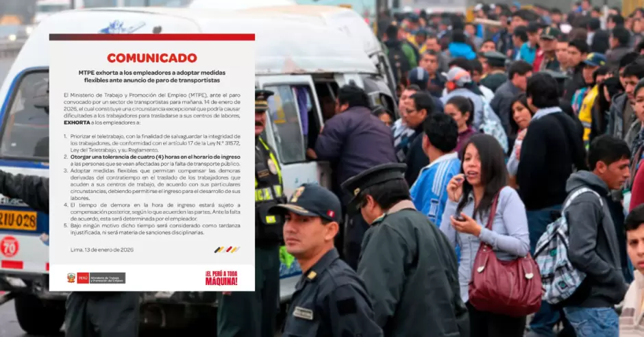 Paro del 14 de enero: Ministerio de Trabajo otorga 4 horas de tolerancia en horario de ingreso
