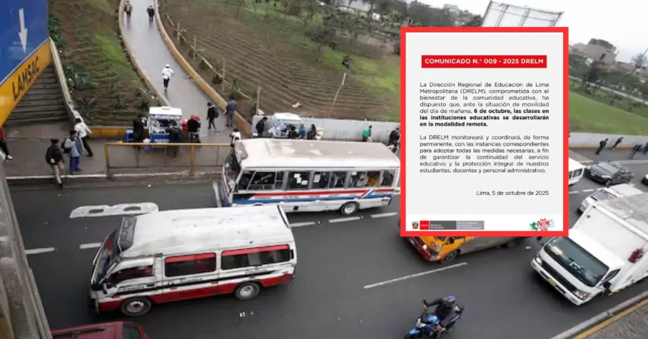 El Ministerio de Educación, a través de la Dirección Regional de Educación de Lima Metropolitana (DRELM), anunció que las clases se darán de forma virtual debido a la convocatoria a paro de transportes para este lunes 6 de octubre.