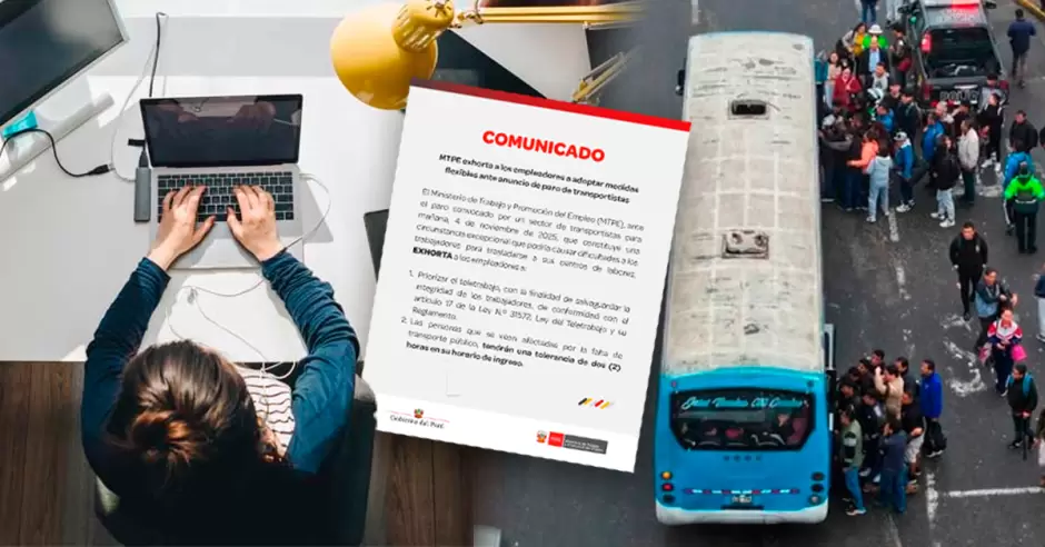 El Ministerio de Trabajo y Promoción del Empleo (MTPE), a través de un comunicado oficial vía X (antes Twitter), pidió a las empresas a tomar medidas que flexibilicen la movilidad de sus trabajadores ante eventuales problemas que puedan generarse a causa de la falta de unidades de transporte público durante el paro convocado para este martes 4 de noviembre.