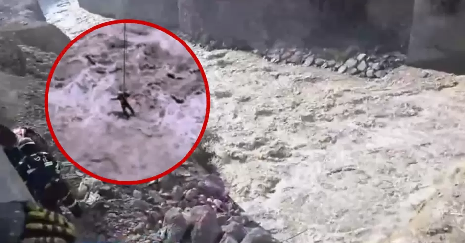A estas horas de la tarde, se registra un fuerte caudal que propició que la cuerda que sostenía al segundo rescatista ceda dejando indefenso al socorrista.