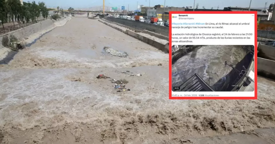 A través de su cuenta oficial en la red social X, el Senamhi precisó que la estación hidrológica de Chosica registró un caudal máximo de 95.54 metros cúbicos por segundo (m³/s) durante la noche del 24 de febrero, cifra que supera los umbrales habituales para esta época del año. Este comportamiento ha sido monitoreado de forma continua por Senamhi, entidad que viene emitiendo reportes diarios para alertar sobre variaciones significativas en la dinámica del río.