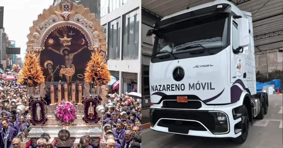 El 'Nazareno Móvil' es un tractocamión de la prestigiosa línea Mercedes-Benz Actros que fue modificado especialmente para soportar más del doble del anda de la sagrada imagen del Cristo de Pachacamilla a fin de garantizar un trayecto seguro, ordenado y respetuoso en su recorrido por las calles del Primer Puerto.