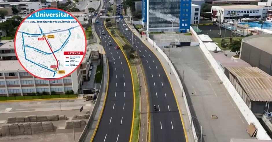 En esa línea, se realizó el cierre temporal de la vía por ambos sentidos de circulación, es decir, de norte a sur y de sur a norte, en el tramo comprendido entre las avenidas Tomás Valle y José Granda.
