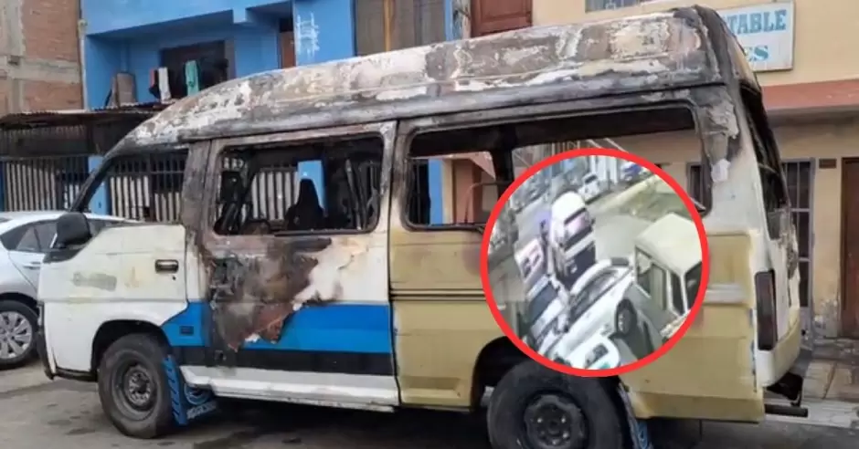 Un sujeto motorizado y disfrazado como delivery incendió una combi estacionada en la vía pública, exactamente en la avenida Perú, en el distrito de Chorrillos.