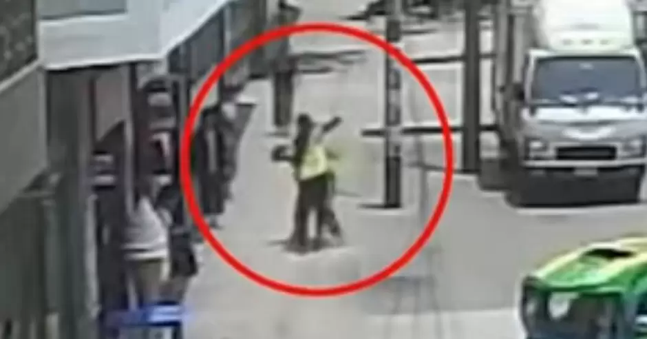 Gracias a las cámaras de seguridad del lugar, se logra observar como fue la violenta agresión de una de estas personas contra un joven que resultó con heridas, cortes y demás. El hombre camina con total normalidad por la vereda de la avenida Malecón Checa cuando de pronto ubica a los dos escolares parados a un lado.