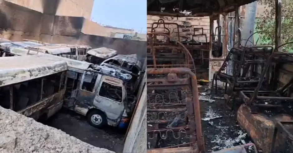Esta mañana, una cochera que almacenaba unidades de transporte público informales fue incendiada por presuntos extorsionadores, dejando 12 buses completamente calcinados.