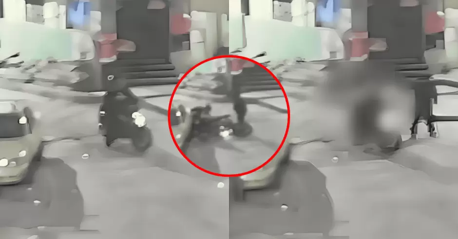 Según lo registrado por las cámaras de seguridad de la zona, se observa a tres personas llegando a bordo de un vehículo menor. Dos de ellos descienden, uno de estos se desplazó hacia la izquierda, mientras que el otro se aleja unos metros hacia la derecha.