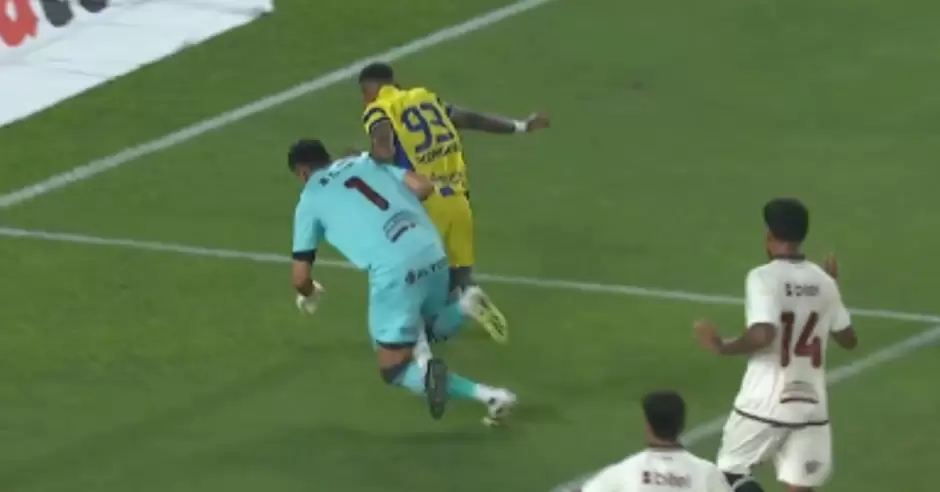 Según las imágenes revisadas, el jugador colombiano introdujo su pierna entre las del portero crema, por lo que se determinó que no había lugar para sancionar penal a favor de FC Cajamarca.
