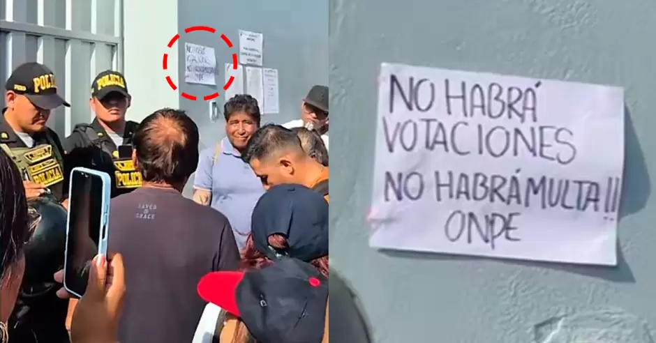Los papeles pegados en la entrada del colegio señalaban que no habría elecciones en el lugar y que los ciudadanos registrados no serían sancionados con multa por no sufragar. Este hecho incrementó la molestia de los votantes, quienes consideraron que se trataba de una vulneración directa a su derecho constitucional.