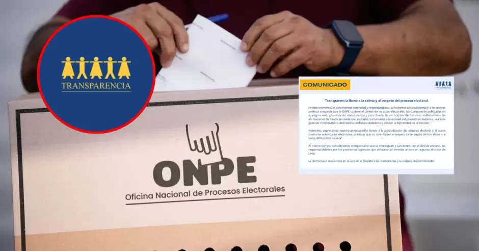 Al respecto, mediante un comunicado, Transparencia rechazó categóricamente la narrativa de fraude que impulsan estas agrupaciones políticas, además de los pedidos de nulidad de los comicios, los cuales, señaló, carecerían de sustento.