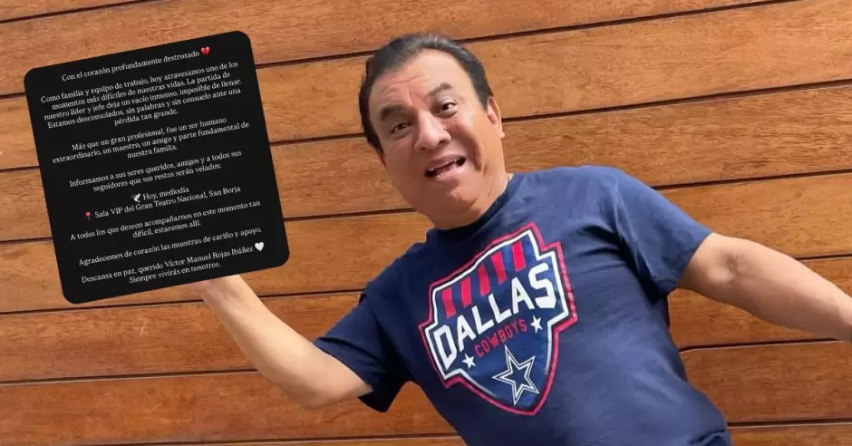 La familia también confirmó que el velatorio se realizará desde el mediodía en la Sala VIP del Gran Teatro Nacional, en San Borja, invitando a amigos, colegas y seguidores a rendir homenaje y despedir al querido actor.