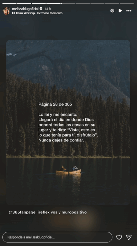 Apenas se supo la noticia, Melissa Klug dejó varios mensajes fuertes mientras atraviesa este momento difícil. "Lo leí y me encantó: Llegará el día en donde Dios pondrá todas las cosas en su lugar y te dirá: 'Viste, esto es lo que tenía para ti, disfrútalo'. Nunca dejes de confiar", se lee en una de sus historias de Instagram.
