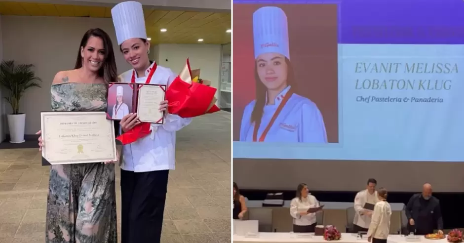 Este martes 25 de noviembre, Melissa Klug vivió un día lleno de orgullo y emociones al ver a su hija, Melissa Lobatón Klug, culminar su formación profesional como chef en pastelería y panadería. La ceremonia, realizada en el Instituto Gastronómico D'Gallia, estuvo repleta de aplausos, lágrimas de felicidad y mensajes de cariño.