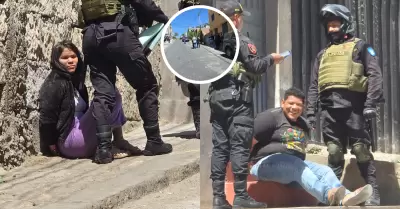 La captura se realizó gracias a una llamada al 105, cuando un ciudadano reportó una actitud sospechosa de la pareja de extranjeros quienes rápidamente fueron intervenidos por efectivos de la Policía en la primera cuadra de la calle Bolivar en el distrito de José Luis Bustamante y Rivero.