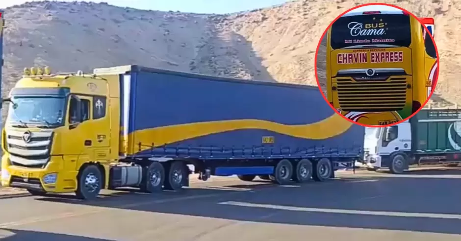 De esta forma, para poder hacerles espacio, los camiones varados no han tenido más remedio que apartarse dejando milímetros de espacio libre para que los buses que infringieron la vía puedan transitar.