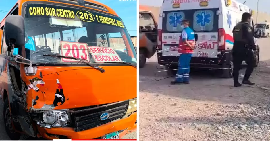 Choque entre bus escolar y patrullero deja tres estudiantes heridos