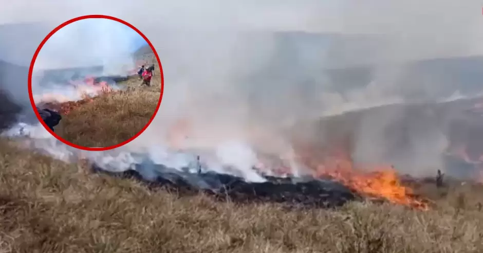 Brigadistas, efectivos de la Policía Nacional del Perú (PNP), continúan avanzando hacia las zonas más afectadas para intentar controlar las llamas del incendio, pero sus esfuerzos no pueden alcanzar a controlarlo.