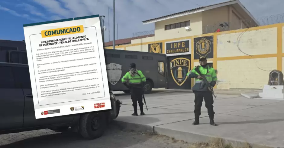 Este viernes, 30 de enero, el Instituto Nacional Penitenciario (INPE) informó sobre el deceso de un interno del centro penitenciario ubicado en la región Tacna. A través de un comunicado publicado en sus canales oficiales, señalaron que el hecho se registró la tarde de ayer jueves, 29 de enero.