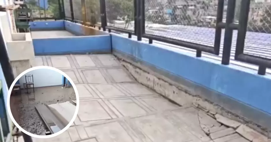 Exitosa asistió hasta el centro educativo y pudo evidenciar que, efectivamente existen serios daños en la infraestructura. En un área del colegio se puede ver como el piso está destruido, generando un serio peligro si es que menores asisten hacia dicha zona.