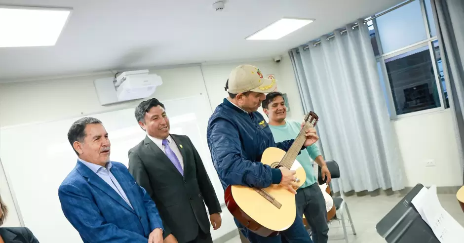 Durante su recorrido, Jerí visitó aulas de piano, laboratorios de cómputo musical y clases de producción digital, donde interactuó con los alumnos y docentes, interesándose por la formación artística de la primera universidad musical licenciada del país.