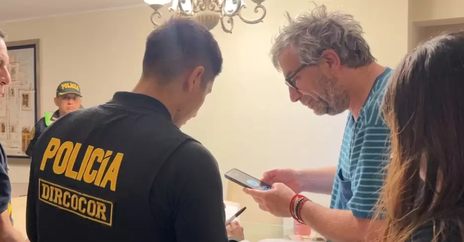 En una imagen difundida por la Dircocor a través de sus redes sociales, se aprecia a Piero Corvetto entregando su equipo celular y mostrando información a las autoridades.