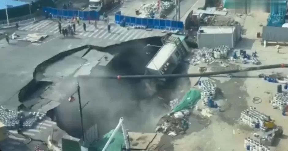 ¡No se salva ni China! Un gigantesco socavón se formó en una calle en Shanghái producto de la construcción de una estación de metro lo que generó el pánico en los ciudadanos que transitaban por la zona. El hecho quedó registrado en un video grabado desde un edificio de enfrente que muestra el impactante hueco ocasionado.