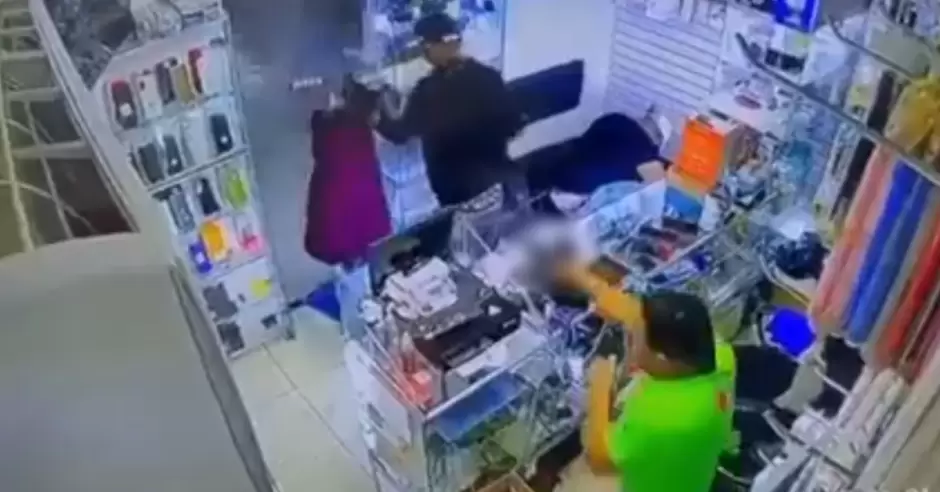 Así, dos delincuentes terminaron baleados tras un fallido atraco, luego de que la víctima se defendiera dentro de su tienda de celulares y todo quedara registrado en video.