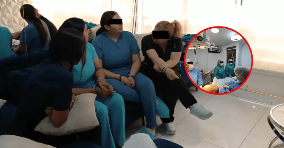 Las atraparon con las manos en la masa. Efectivos de la PNP, la tarde de este viernes 26 de diciembre, intervinieron a estas seis féminas, quienes se encontraban realizando una cirugía estética ilícita en un departamento en el quinto piso del condominio Los Girasoles, en El Agustino.
