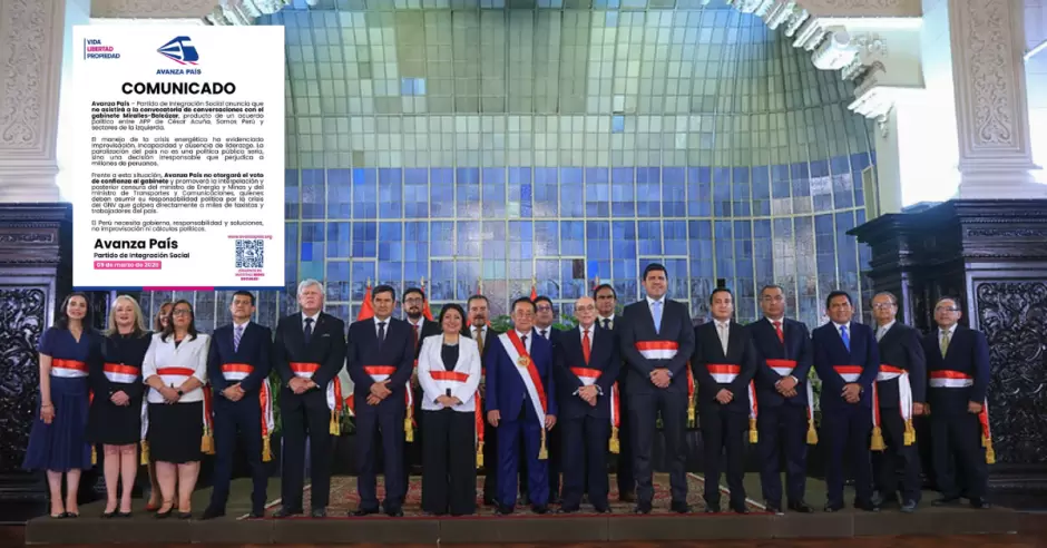 "Frente a esta situación, Avanza Papis no otorgará el voto de confianza al Gabinete y promoverá la interpelación y posterior censura del ministro de Energía y Minas y del ministro de Transportes y Comunicaciones, quienes deben asumir su responsabilidad política por la crisis del GNV que golpea directamente a miles de taxistas y trabajadores del país", se lee en su comunicado emitido este lunes 9 de marzo.