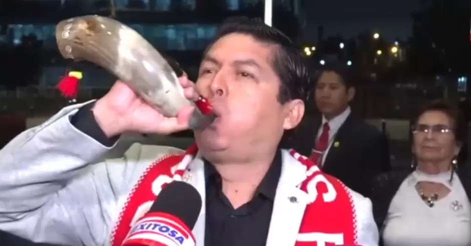 El candidato al sillón presidencial llegó hasta el Centro de Convenciones tocando el pututo, una trompeta natural y ceremonial de origen andino. El instrumento es fabricado usualmente por caracolas marinas o hasta cuernos, en el caso de Caller es un cuerno.