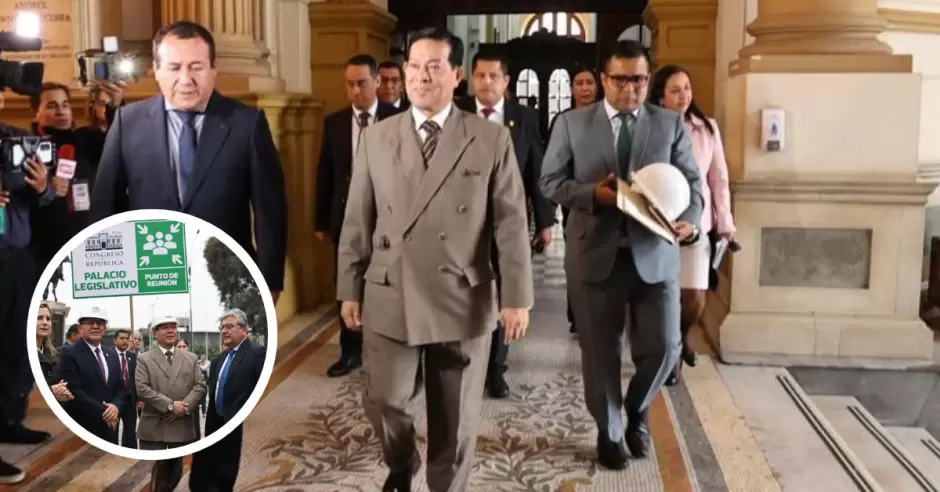 El actual premier se mantuvo junto al presidente del Congreso, Eduardo Salhuana, quien también llegó hasta el referido punto. Además, se visualizó la presencia de la parlamentaria María del Carmen Alva, quien dialogaba constantemente con el premier y Salhuana.