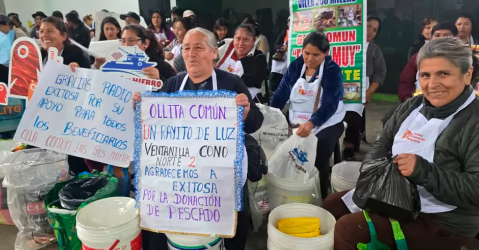 En ese sentido, se hicieron presentes las lideresas de las ollas comunes 'Virgen de Guadalupe 2', 'Mi Angelito', 'Madre de Dios, 'La Fe Mueve Montaña', 'Unión Solidario', 'Unión Solidaria', 'Señor de los Milagros', entre otros, quienes agradecieron muy emocionadas este donativo, ya que así, podrán asegurar la seguridad alimentaria de sus beneficiarios.