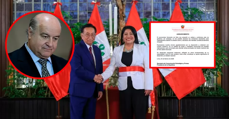 La Presidencia de la República rompió el silencio y confirmó lo que ya se venía comentando en los pasillos políticos: Hernando de Soto no será Presidente del Consejo de Ministros. A través de un comunicado que titula el inicio con "Agradecimiento", el Ejecutivo explicó que no se alcanzaron los consensos necesarios para concretar su incorporación al gabinete.