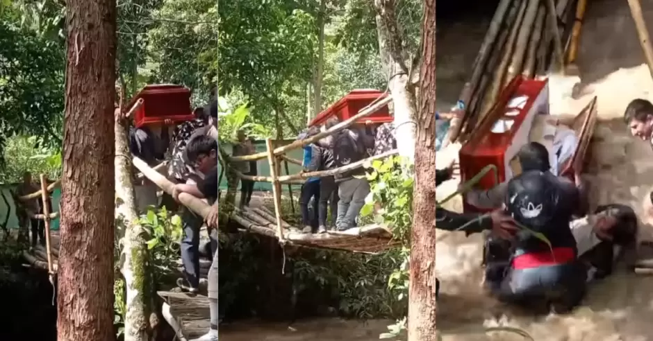 El incidente se registró la mañana del 17 de febrero, en el caserío Lanchema, distrito de Pomahuaca, provincia de Jaén. Un grupo de personas trasladaba el féretro de Adbias Eredia Bazán hacia el cementerio local, cuando intentaron cruzar un puente artesanal construido con troncos. Sin embargo, la estructura no resistió el peso y cedió en cuestión de segundos.