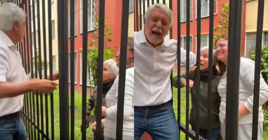 Rápidamente, se acerca más a la reja y para facilitar la 'selfie', el exalcalde de Bogotá recibe el celular a través de los barrotes y estira su mano para acomodarse frente a la cámara. Posteriormente, para tener una mejor cercanía con ambas simpatizantes, atravesó nuevamente su brazo por la reja, pese a que una de las mujeres dentro del conjunto residencial le advirtió que el lugar tenía corriente eléctrica.