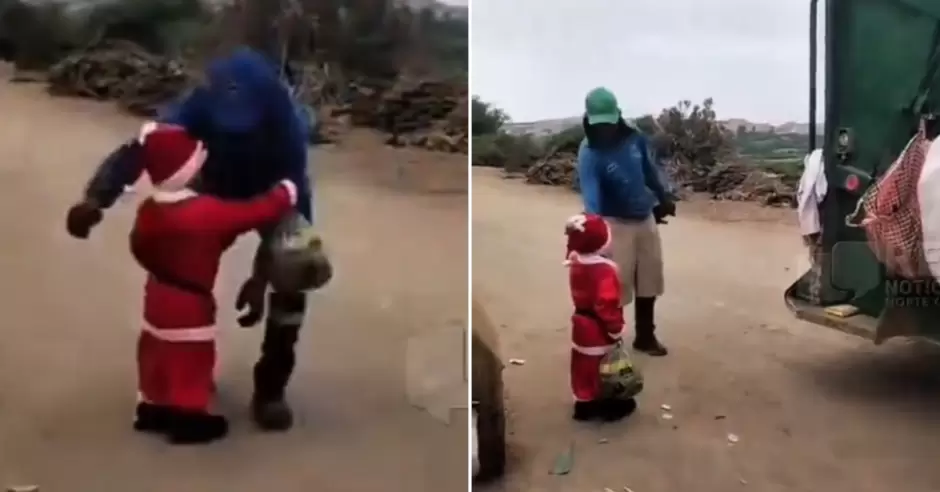 La acción del niño no se limitó a los operarios que recolectaban los residuos. El chofer del camión municipal también recibió su panetón, mostrando la intención del menor de reconocer a todos los que participan en esta labor.