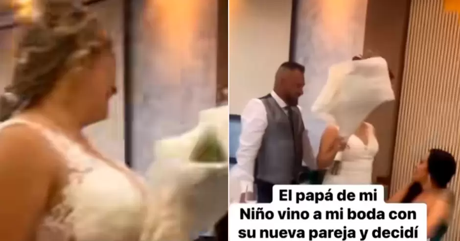 "El papá de mi niño vino a mi boda con su nueva pareja y decidí darle flores a ella, ya que ella trata muy bien a mi niño. ¿Qué opinan?", se lee en la descripción del clip.