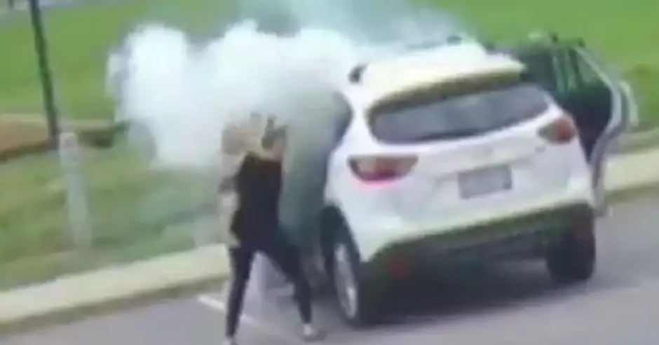 Solo segundos separó a los pequeños de las llamas. Se sabe, que el accidente fue provocado por una falla en la batería del auto. Toda la familia resultó ilesa.