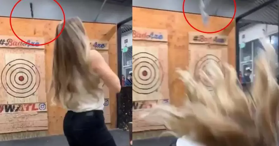 Una joven en Estados Unidos en la localidad de Arizona decidió practicar la disciplina del lanzamiento de hacha, pero debido a su mala puntería la nueva experiencia casi termina en una tragedia.